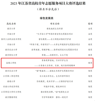 本届江苏省高校青年志愿服务项目大赛,设置乡村振兴、为老服务、关爱少年儿童、阳光助残、绿色发展、应急救援、理论宣讲、其他类等8个项目类别,本专科同台竞技,共有84所高校 245 个项目参加。经过项目申报、资格审核、线上阅评、路演答辩、评审委员会评议等环节,最终我院项目从150个答辩项目中脱颖而出,荣获“绿色发展组”银奖。