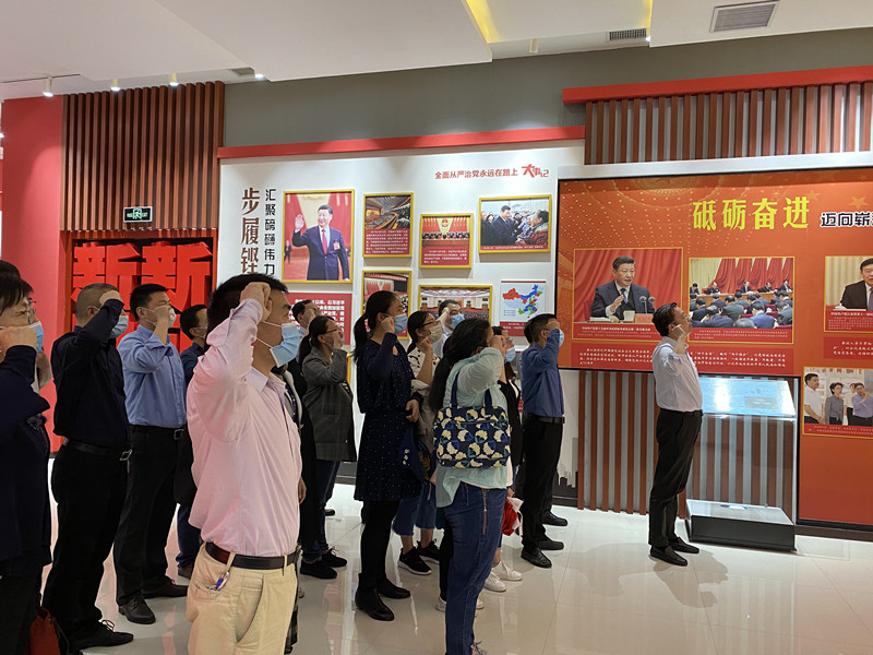 在讲解员的引导和讲解下,英国上市官网365一行仔细观看了详实的事例、案例、图片、视频等图文并茂的资料,重温了党和国家领导人、革命先辈的光辉事迹。在警示教育区,一件件触目惊心的案例,一段段悔恨交加的独白,给大家带来了视觉和心灵的冲击和震撼。在宣誓区,全体党员重温了入党誓词,以坚定有力的誓言表达了不忘初心、牢记使命的坚定决心。学院领导班子成员还现场参加了“尚德昭廉教育测试”答题。