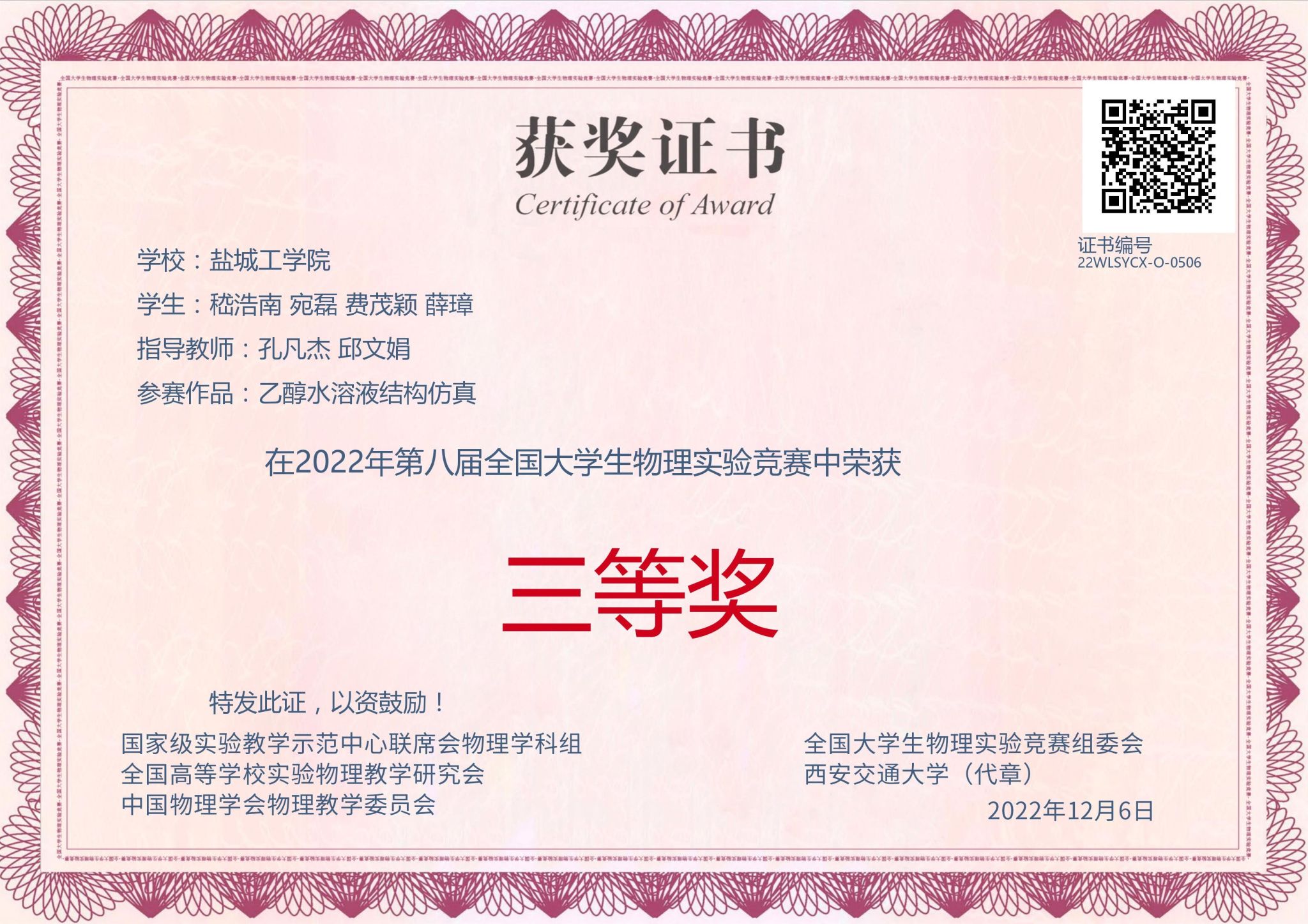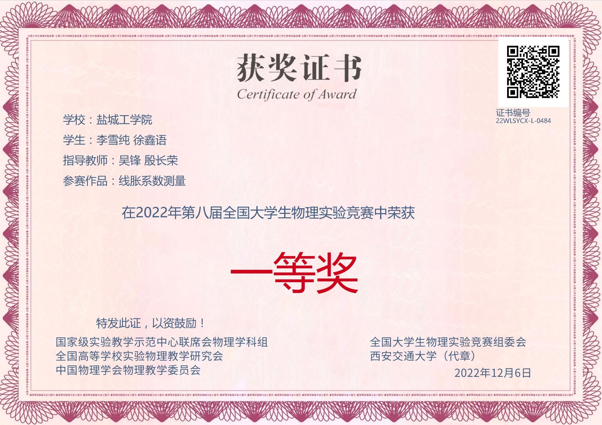 近日,2022年第八届全国大学生物理实验竞赛(创新赛)比赛结果揭晓,我校学子喜获一等奖2项,二等奖1项,三等奖2项。英国365公司获本次竞赛的优秀组织奖。