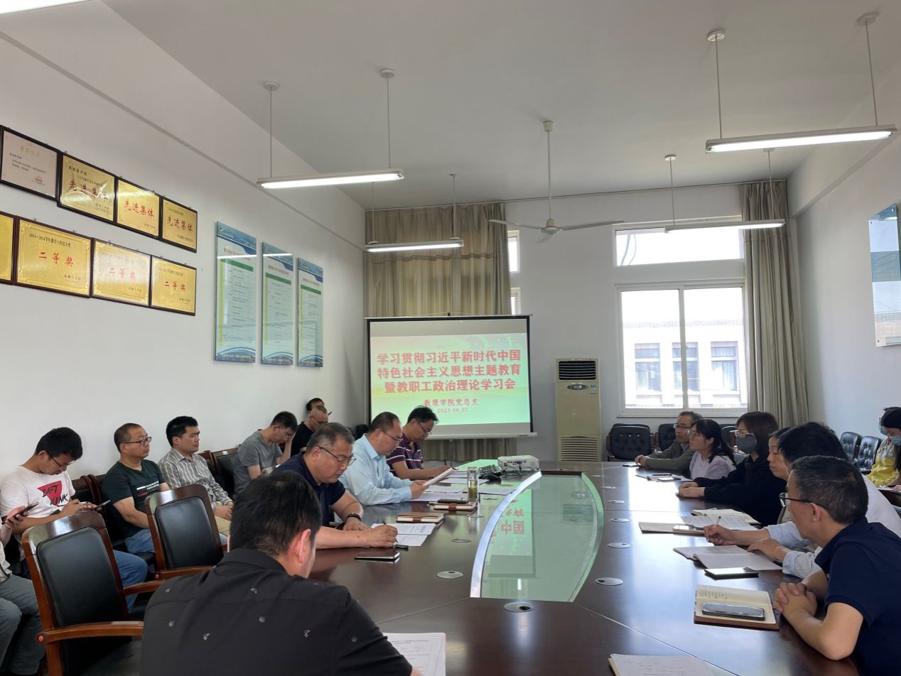 6月8日上午,在希望大道校区博学楼B512会议室,英国上市官网365开展学习贯彻习近平新时代中国特色社会主义思想主题教育暨教职工政治理论学习会,党总支书记魏伟华主持,全体教职工参加。