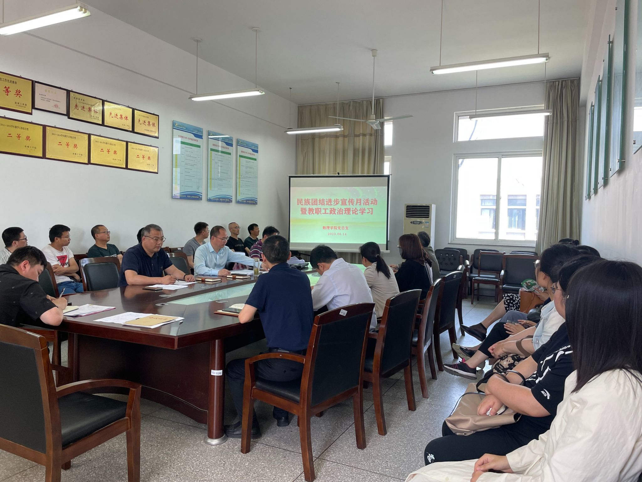 6月14日下午,在希望大道校区博学楼B512会议室,英国上市官网365开展“民族团结进步宣传月”活动暨教职工政治理论学习会。英国上市官网365党总支书记魏伟华主持,全体教职工参加。