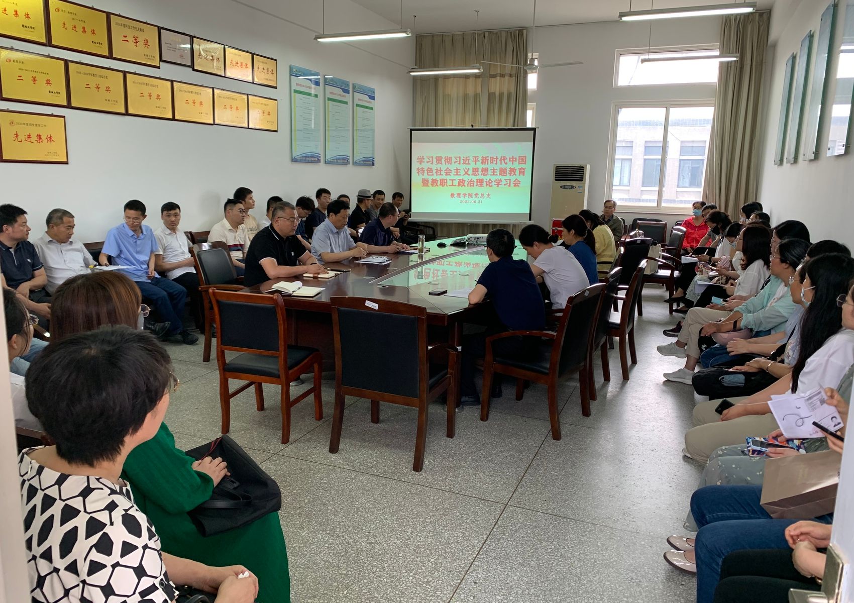 6月21日下午,在希望大道校区博学楼B512会议室,英国上市官网365开展学习贯彻习近平新时代中国特色社会主义思想主题教育暨教职工政治理论学习会,党总支书记魏伟华主持,全体教职工参加。