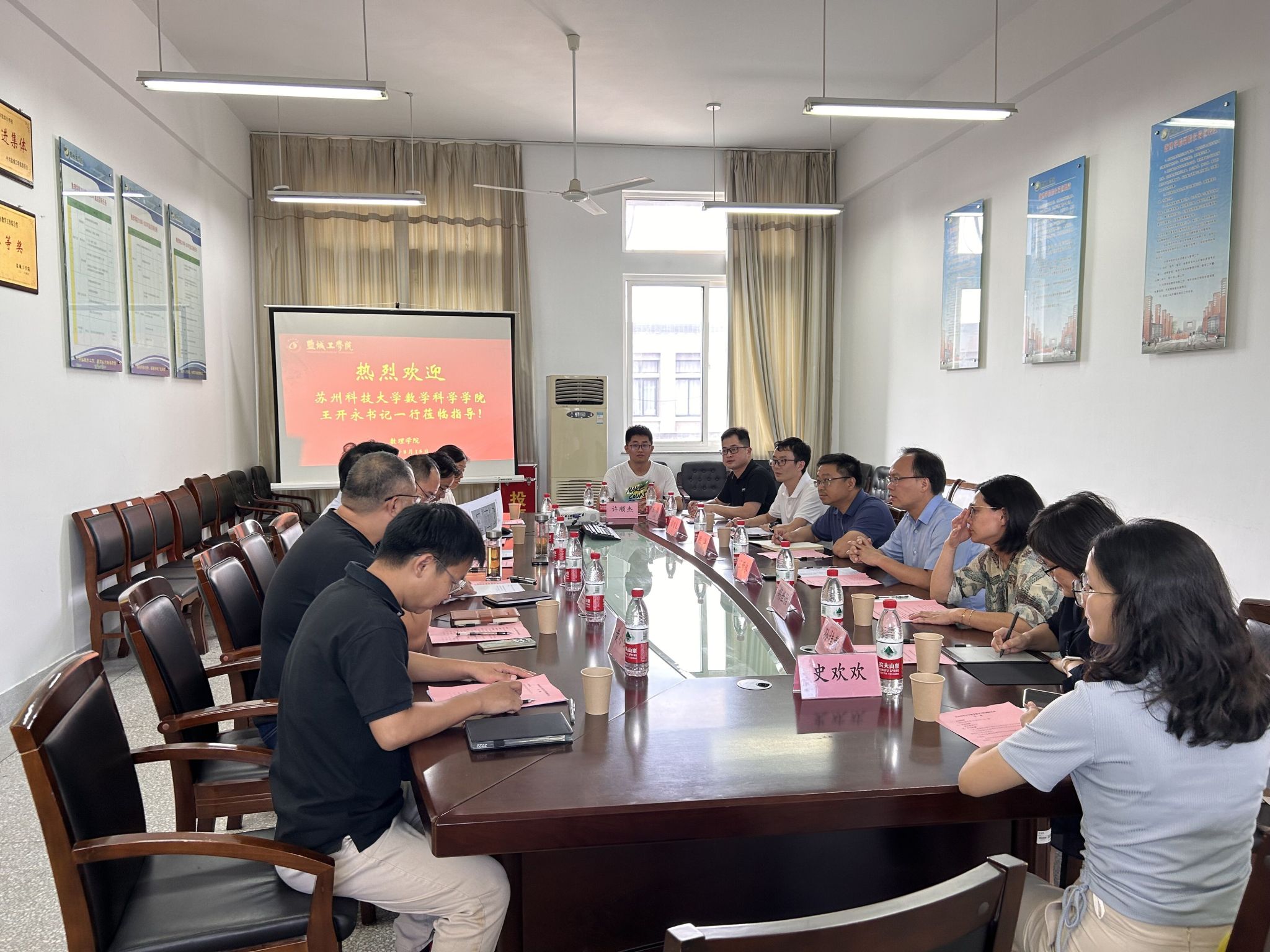 8月15日下午,苏州科技大学数学科学学院党委书记王开永一行8人来我院调研交流。交流会在博学楼B512召开,院长薛长峰、党总支书记魏伟华、副院长徐宁以及学院学生工作相关负责人参加交流会。