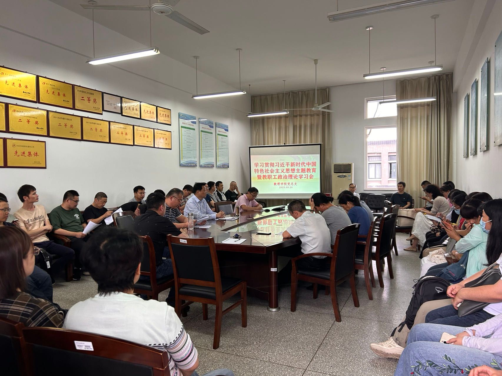 9月20日下午,在希望大道校区博学楼B512会议室,英国上市官网365开展学习贯彻习近平新时代中国特色社会主义思想主题教育暨教职工政治理论学习会,院长薛长峰主持,全体教职工参加。
