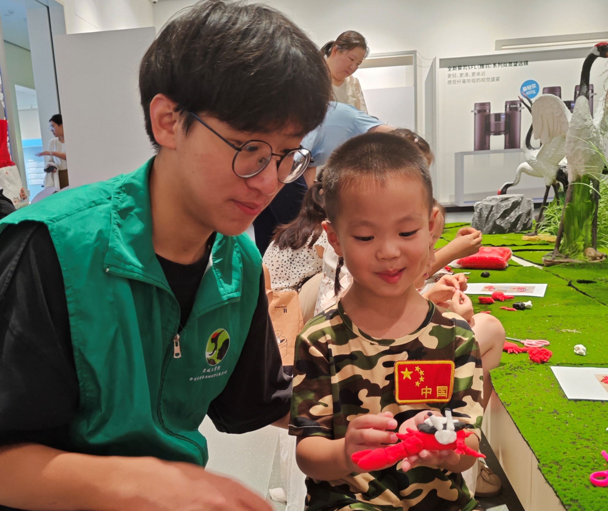 8月4日,“大力水手”招潮蟹自然教育课堂开课。课堂上,实践团成员为孩子们详细讲解了招潮蟹的生活环境、日常行为和外形特征等,让孩子们对这种湿地生物有了初步的了解。为了激发孩子们探索自然的欲望,让他们对招潮蟹有更加直观的认识,实践团成员还与工作人员一起,指导孩子们用粘土制作招潮蟹标本。标本制作现场,孩子们尽情发挥,笑声不断,气氛十分热烈。