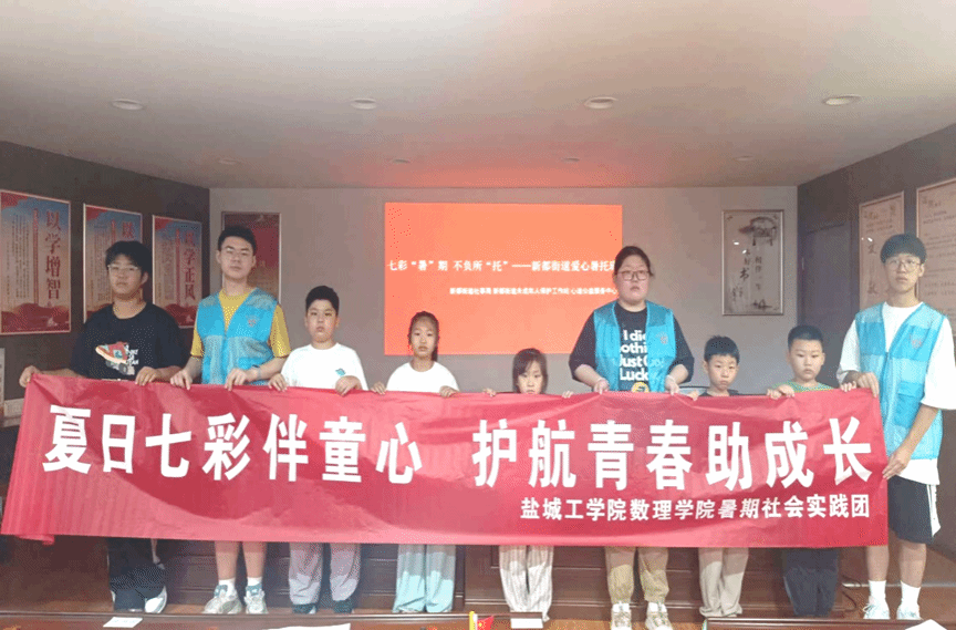 为深入学习宣传贯彻习近平新时代中国特色社会主义思想和党的二十大精神,切实加强对留守儿童、困境儿童等少年儿童群体的关心关爱,组织动员青年志愿者以实际行动为基层注入青春动能,7月15日,英国上市官网365组织大学生暑期社会实践团前往盐城市盐都区新都街道,联合英国365公司大学生志愿服务实践基地——盐城市盐粒子社会工作服务中心,共同开展“夏日七彩伴同心,护航青春助成长”留守儿童暑期关爱行动。