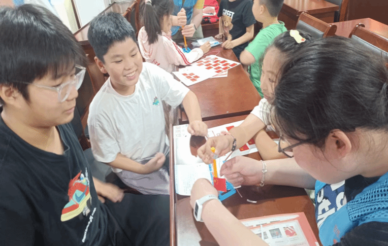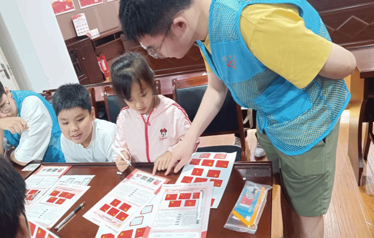 同时,为进一步让留守儿童们认识国旗、党旗、军旗、团旗等各种国家旗帜,增强他们尊重国家旗帜、爱护国家旗帜的意识,弘扬爱国主义精神,志愿者们通过精心准备的PPT耐心地讲解各种旗帜的含义和象征,并指导儿童们动手制作国旗升降台,让他们在亲身体验中感受到祖国的文化底蕴和荣耀,在心中播下爱党爱国的种子。