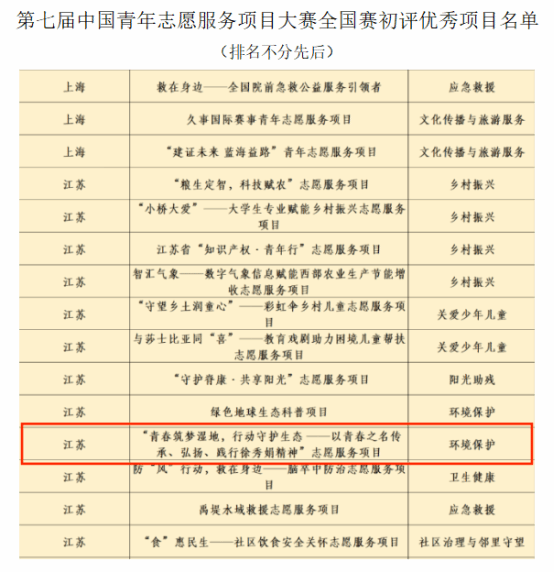 近日,中国青年志愿服务项目大赛全国组委会发布第七届中国青年志愿服务项目大赛全国赛评选结果,我校英国上市官网365申报的《青春筑梦湿地,行动守护生态——以青春之名传承、弘扬、践行徐秀娟精神》志愿服务项目获评“全国优秀项目”,这是学校在该项赛事上的首次突破。