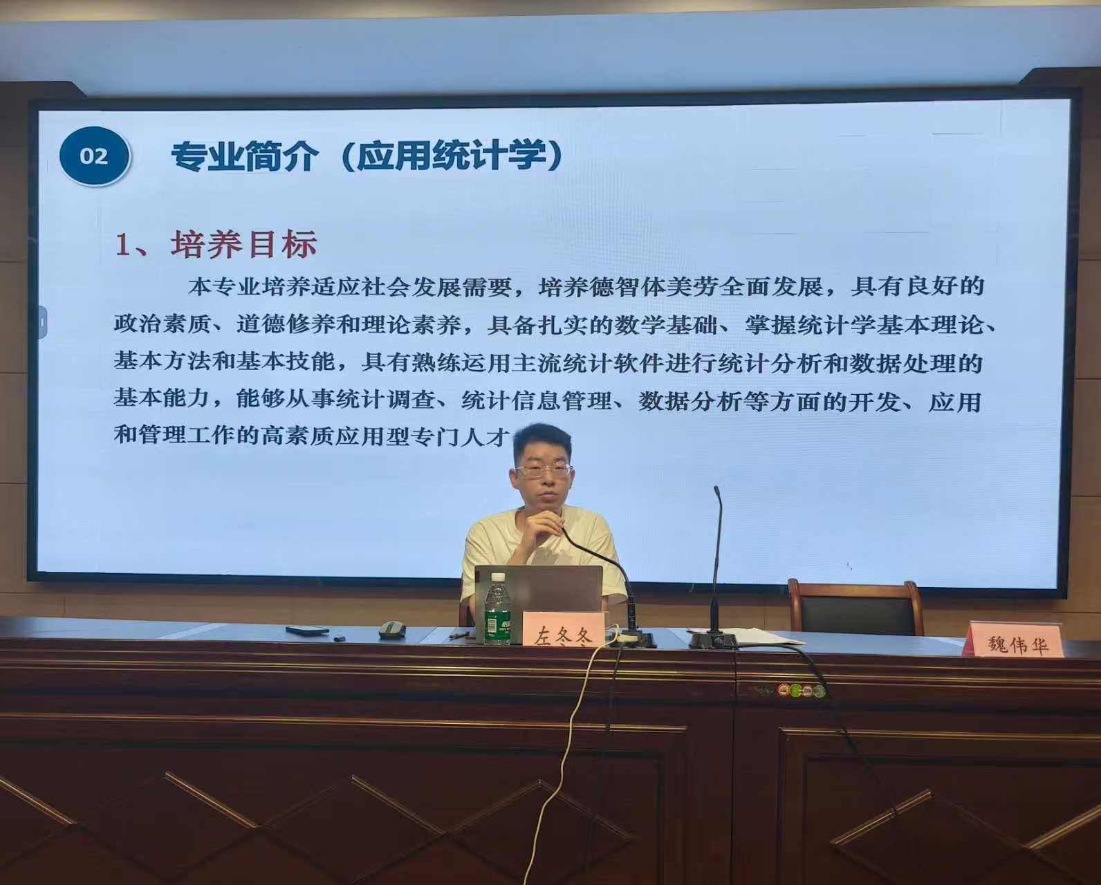 专业教育方面,学术助理兼应用统计学专业系主任左冬冬、数据科学与大数据技术专业系主任王世杰分别围绕为统计和数据专业,向新生解读了人才培养方案、课程设置、就业方向等方面的内容,希望全体新生在大学期间认真学习,积极进取,为未来的发展奠定良好基础。