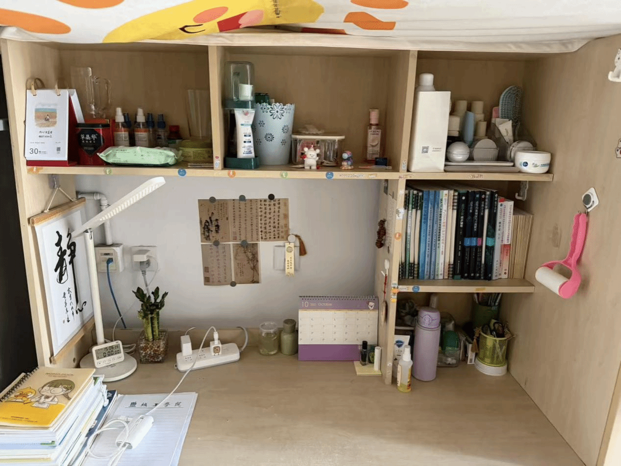 活动期间,各宿舍迅速响应,同学们热情投入,现场一派热火朝天的劳动景象。在打扫洁净的基础上,大家更展露出无限的巧思妙想:有的宿舍秉持“绿色环保”理念,将废旧物品“变废为宝”,制成独具匠心的装饰摆件;有的则精心打造“书香雅室”,以书籍字画为伴,满室墨香,文化气息扑面而来;更有宿舍用一张张合影、一句句手写寄语,筑起一道“温情墙”,定格下属于彼此的青春记忆与温暖瞬间。