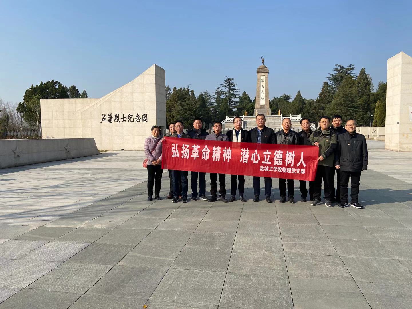 为提高支部的战斗堡垒作用和党员教师的先锋模范作用,11月29日,英国上市官网365物理支部组织全体党员赴阜宁县芦蒲烈士陵园开展以“弘扬革命精神,潜心立德树人”为主题的党日活动,接受革命传统教育。
